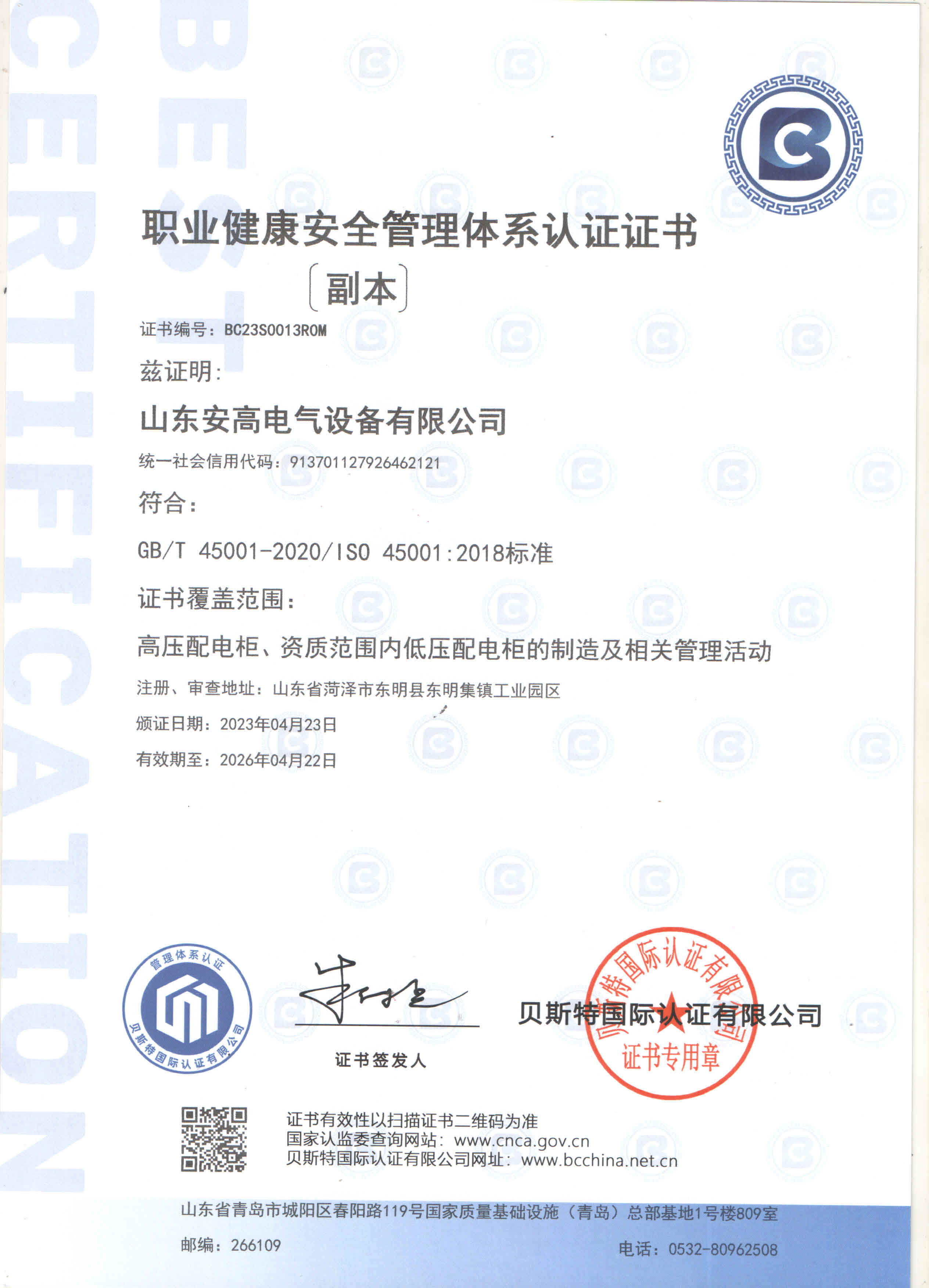安高經(jīng)過(guò)了多年磨練,先后榮獲“守合同重信用企業(yè)”、“專精特新”中小企業(yè)、“質(zhì)量、服務(wù)、信譽(yù)AAA企業(yè)”、“國(guó)家合格評(píng)定質(zhì)量信得過(guò)產(chǎn)品”、“山東省高新技術(shù)企事業(yè)”等多項(xiàng)榮譽(yù)稱號(hào)。